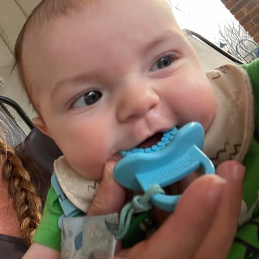 PaciTeether™ is a patented product that provides the functions of both a pacifier and a teether in one. We designed it to be hands free and recommend it for ages 6 months-5 years. PaciTeether™ is able to handle all teething stages because it targets all teeth and it can even be used for teeth grinding prevention. It is chill safe, non-toxic and made in 100% USA food grade silicone. PaciTeether™ is the only product on the market today with a shield plate that is manufactured in one piece. No assembling parts minimize choking hazards, making it the safer choice for your little one. Recommended by dentists, autism specialists, etc, it's easy to see how we're “Pioneering a teething revolution!"